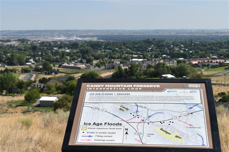 Candy Mountain became Benton County’s tenth park in June of 2016. A State of Washington grant, matched by funds raised in the community by the Friends of Badger Mountain, afforded the acquisition of 186 acres in Goose Gap and the upper slopes of the mountain. A parking area and multiple trails have been developed, including various interpretive and other elements.