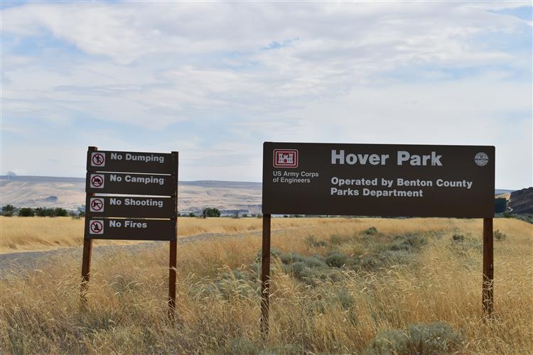 Hover Park lies about six miles downstream of Two Rivers Park on the Columbia River, and is a Corps of Engineers property operated by Benton County under the same lease as Two Rivers. Hover consists of about 200 acres of undeveloped open space, and is near the site of the old town of Hover, remnants of which can be identified in the area. The Park Board is currently evaluating future options for Hover Park. Hover Park does not allow overnight camping or off-road vehicle use.