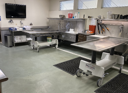 Not all cases falling under Coroner's jurisdiction are autopsied. Some deaths can be certified after a review of medical records and an external examination; those decedents can be released to the funeral home without being brought to the coroner's facility. Deaths which occur within Benton County, and fall under BCCO's jurisdiction, and require a more detailed external examination or an autopsy, are transported to BCCO facility by BCCO staff for these purposes. During 2024, the BCCO did not have a forensic pathologist on staff, so contract forensic pathologists were used who traveled to our facility. BCCO also contracted with several surrounding counties to allow them use of our autopsy suite for their autopsies.
